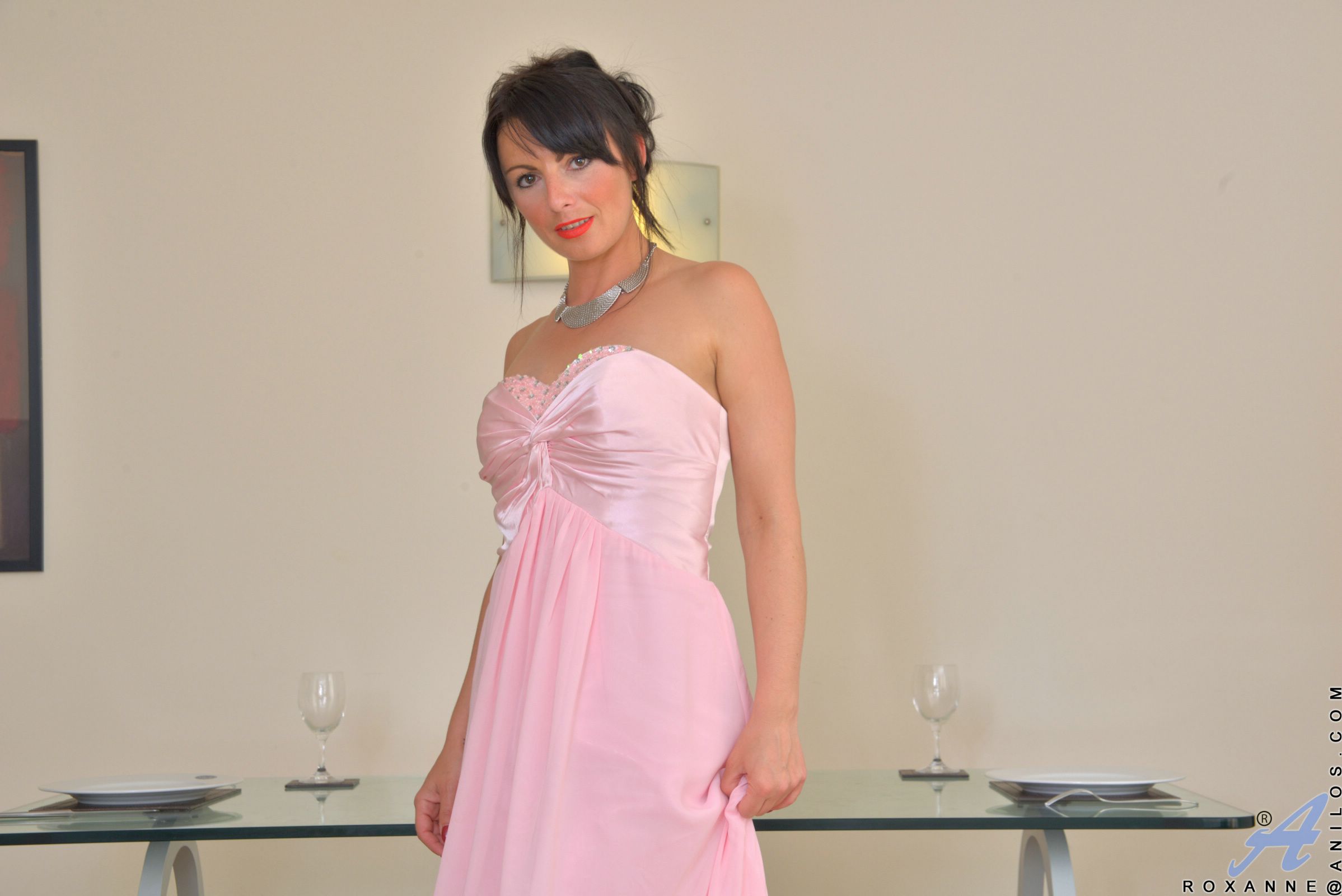 Mature brunette Roxanne showing off her beautiful pussy